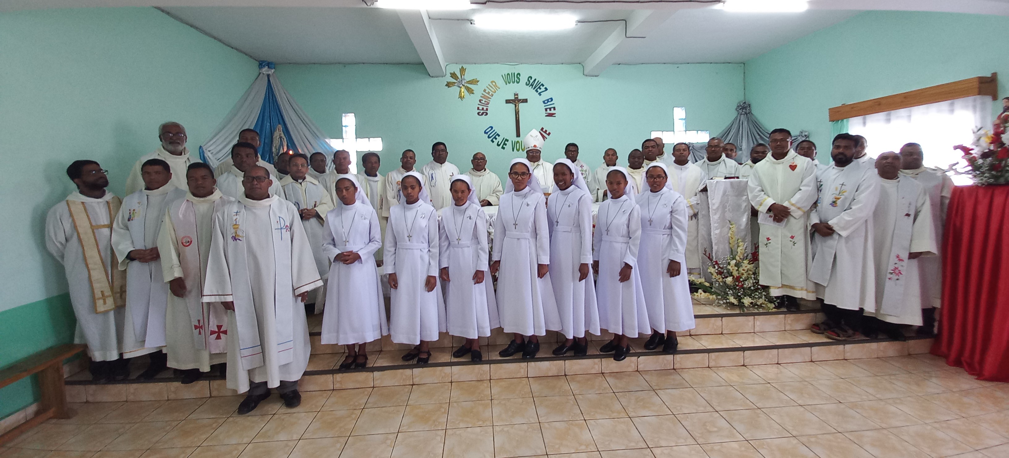 À la fin du noviciat, les novices prononcent leur première profession religieuse, par laquelle ils s’engagent à vivre, pour un temps déterminé, les vœux de chasteté, de pauvreté et d’obéissance. C’est un moment de consécration solennelle, où ils affirment publiquement leur désir de suivre le Christ dans la voie de la vie religieuse au sein de la congrégation des Sœurs Missionnaires de Marie Immaculée (SMMI). Traditionnellement, cette profession est célébrée le 8 septembre, jour de la Nativité de la Vierge Marie.